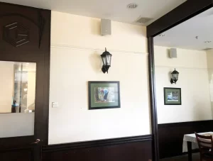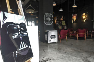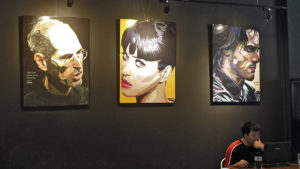 Featuring a unique cafe with stunning portrait paintings.