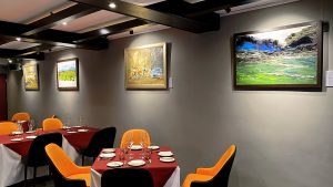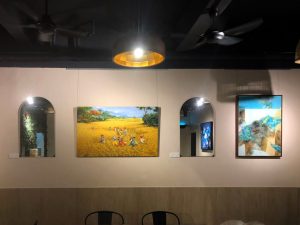 Featuring a two floor restaurant and bar with some of these amazing paintings filling up the wall.